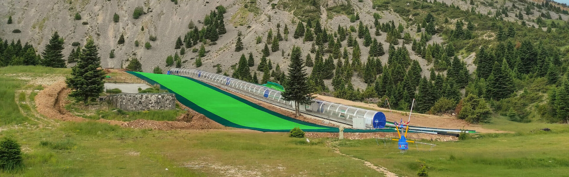 Rund um einem modernen Type-N-Zauberteppich mit Galerieüberdachung von Bruckschlögl , der für einen sicheren und komfortablen Bergtransport von Besuchern und Sportgeräten sorgt, entstanden eine ganzjährig nutzbare, 1.500 m² große Dry-Slope-Skipiste sowie zwei Tubby-Rutschstrecken. Diese beiden überbrücken jeweils rund 90 Meter. Eine davon hält zwei rasante Kurven bereit, die Zweite ist auf „Full Speed“ getrimmt und komplett gerade gestaltet, wobei Bremsmatten den sicheren Halt im Tal garantieren.
