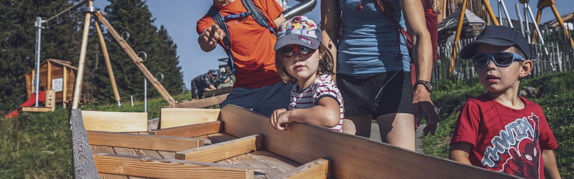 Bei den Kinder- und Familienattraktionen im Madrisa Kinderland (Klosters, Schweiz) dreht sich alles um das Maskottchen Huhn Hanna und ihre vier Freunde – die Madrisa-Bande.