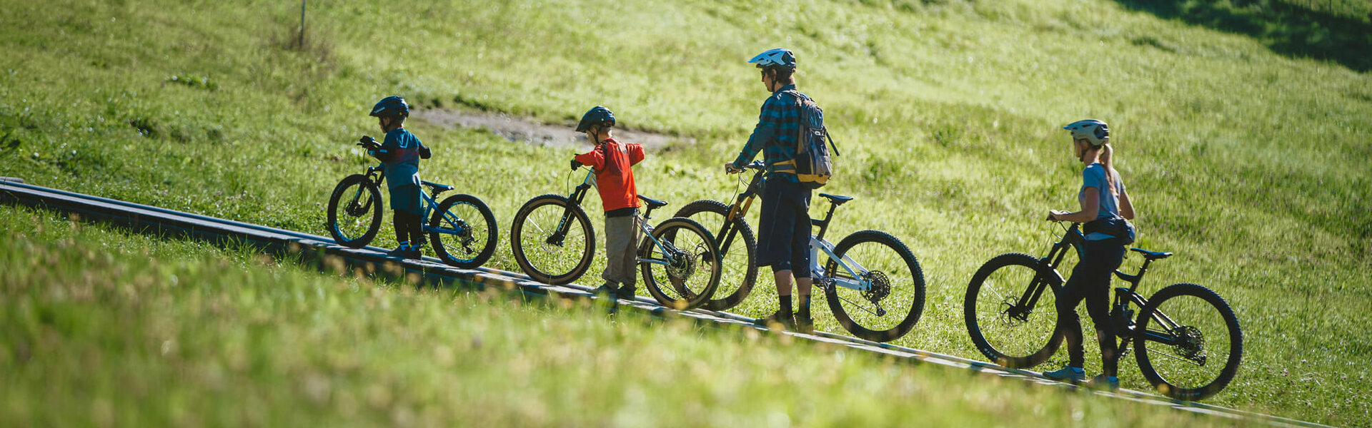 Als Österreichs größte Bike-Region finden Sportler jeder Erfahrungsstufe in Saalbach die passende Auf-, Aus- und Abfahrt. Erste Trail-Erfahrungen sammeln dabei viele im „Learn to Ride Park“ auf der Turmwiese neben der Kohlmaisbahn.