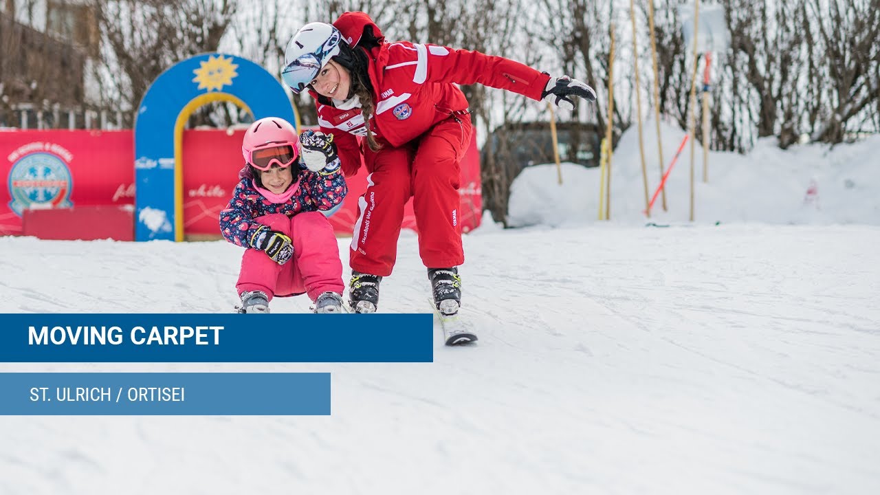Mit den Bruckschlögl-Zauberteppichen im Skikinderland absolviert der Skinachwuchs laut Leo Zambon, Präsident der Ski- und Snowboardschule St. Ulrich, mit direktem Blick auf ihre berühmte Namensgeberin beinahe schon seine erste kleine „Sella Ronda“.